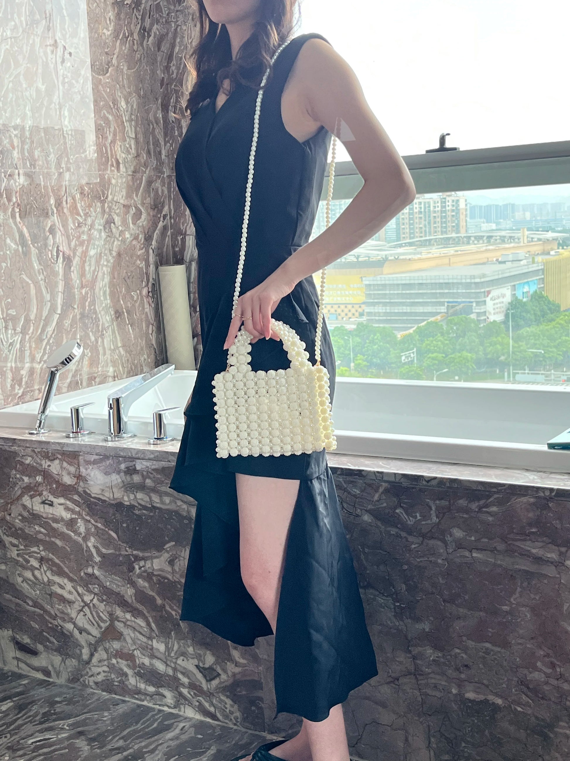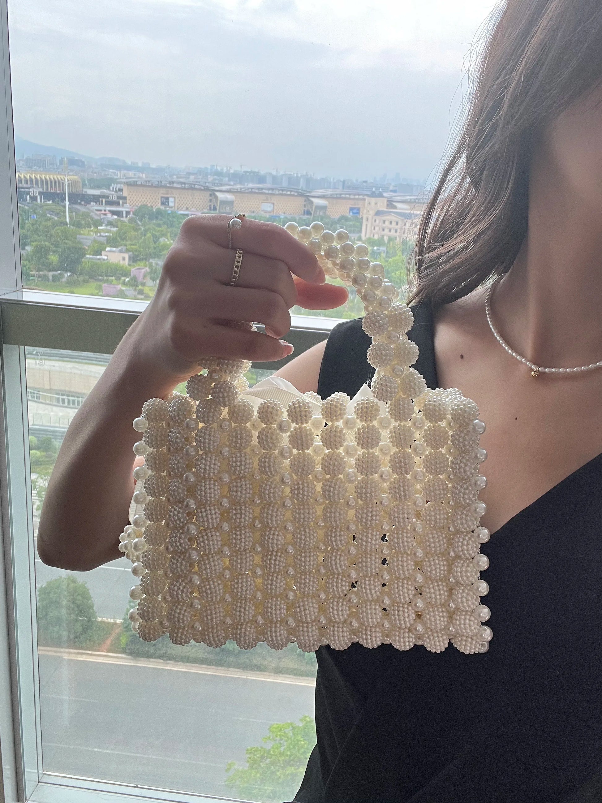 La pochette est fabriquée à partir de polyester robuste et de haute qualité, ce qui lui confère solidité et durabilité tout en conservant une légèreté indispensable pour un accessoire de soirée. La structure rigide de la pochette protège vos effets personnels et maintient sa forme élégante. Les perles délicatement enfilées et la chaîne de perles sont conçues avec précision pour offrir un éclat raffiné et durable, reflétant la lumière de manière subtile et luxueuse. La doublure en polyester à l’intérieur de la pochette assure une protection douce des objets transportés, tout en ajoutant une finition soignée et agréable au toucher.